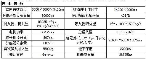 如下圖該設備以拋丸清理為主,并有能升降的噴丸機構,對工件內腔補充清理,適用于水泵、汽輪機、機床、電機、化工機械、建筑機械等行業中大型鑄、鍛、焊接件的表面清理和強化。