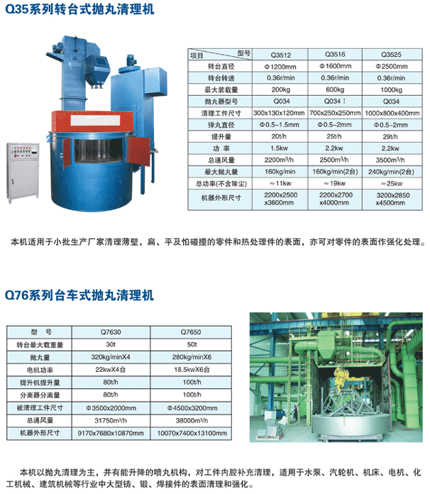 Q35系列和Q76系列的轉臺式拋丸清理機如下: