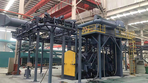 懸鏈式拋丸機開關動作不靈敏或不按規定動作:拋丸機有關電氣元件損壞,檢查更換;拋丸機電氣箱灰塵、污垢過多,電氣接觸點接觸不良;拋丸機斗式提升機不運轉:異物卡住,去掉提升機底部過大顆粒;拋丸機提升帶帶打滑,調整傳動輪漲緊裝置,漲緊皮帶;拋丸機提升機底部丸料過多,按順序停機并清除丸料。